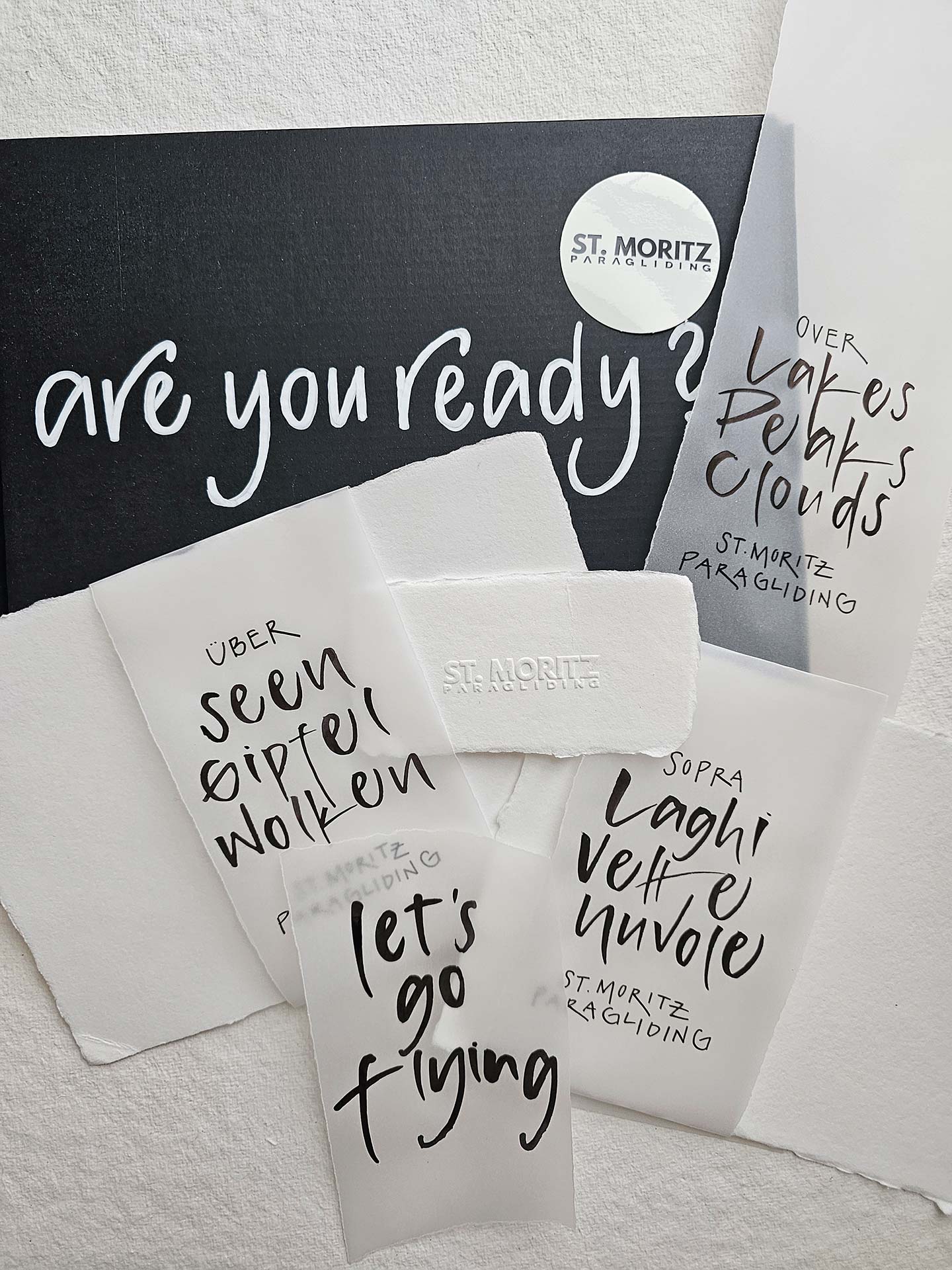 Neue Projekte und handschriftliche Herzensideen entstehen laufend. Vielleicht sind es eines Tages Taschen, Postkarten, Agenda-Unikate oder Schriftzüge aus dem Engadin.