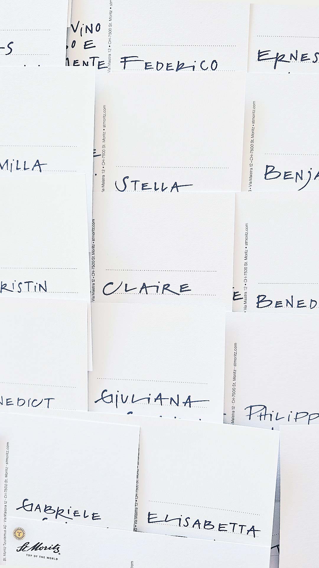 Persönlichkeit auf einen Blick. Handgeschriebene Namensschilder, Platzkarten oder Eventbeschriftungen schaffen eine elegante, persönliche Atmosphäre.